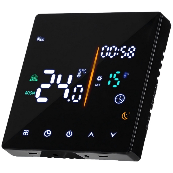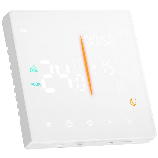 1、灵活适配:双负载设计(3A/16A),广泛匹配电热膜、发热电缆、水暖系统、壁挂 炉等多种设备 |