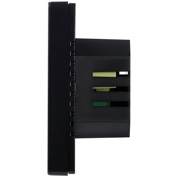 该系列温控器采用86mm标准安装尺寸,配备直观的彩色触摸屏,支持本地触摸操 控。WiFi版本额外具备手机远程控制功能,可实时获取天气与湿度信息,实现智能联 动。产品提供3A与16A两种负载规格,适配不同功率的采暖设备,满足多样化的安装需 求。 |