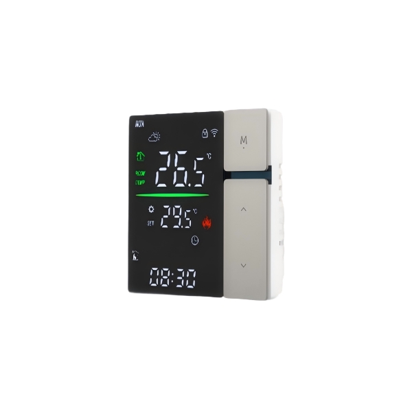 SDM5 智能温控器结合了Wi-Fi远程控制、智能编程与精确温控技术,适用于多种地 暖系统。其设计注重用户体验与节能效果,支持手机远程操控,方便用户随时随地调节 室内温度,兼顾舒适与能源节约。 |