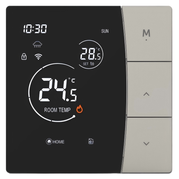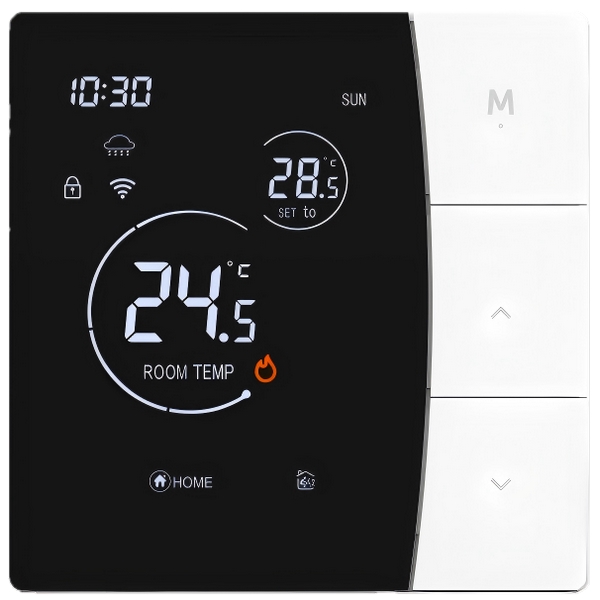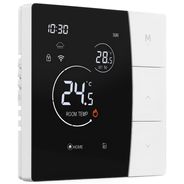 4、安装兼容性强:宽电压设计(AC90-240V),适用各类供电环境;3A(水暖)与 16A(电暖)双负载配置,覆盖主流供暖设备。 |
